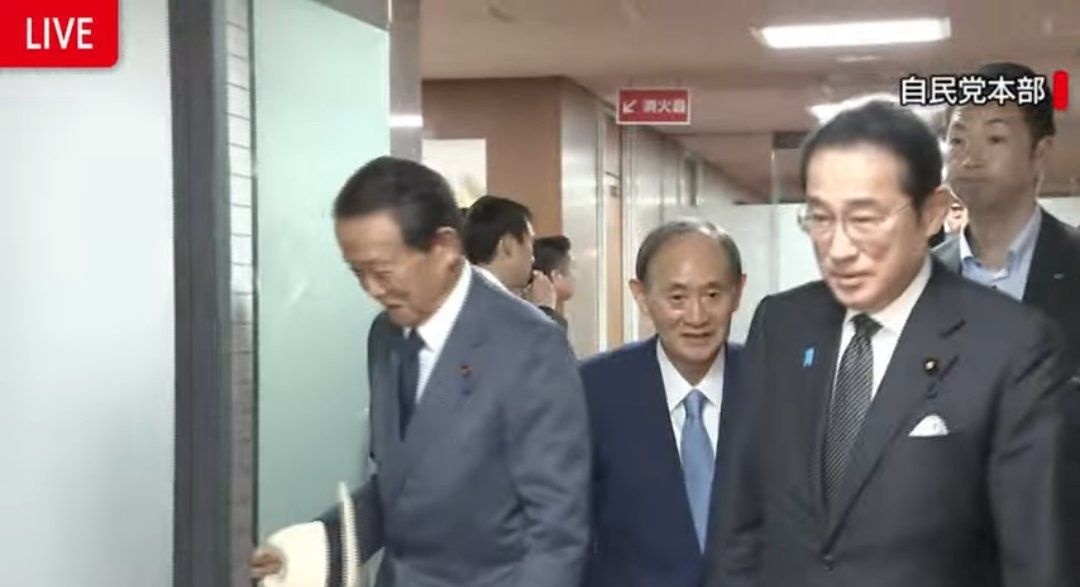 岸田の後ろの男の口が怖い