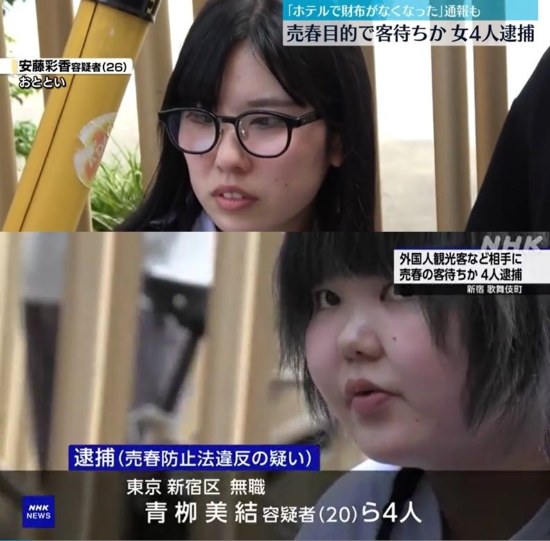 警視庁は歌舞伎町で相次ぐ売春目的の客待ちを防ぐためパトロールを強化しています。逮捕されたのは、青柳美結(20)、 安藤彩香(26)、西本愛桃(25)、内山夢叶(24)の4人。