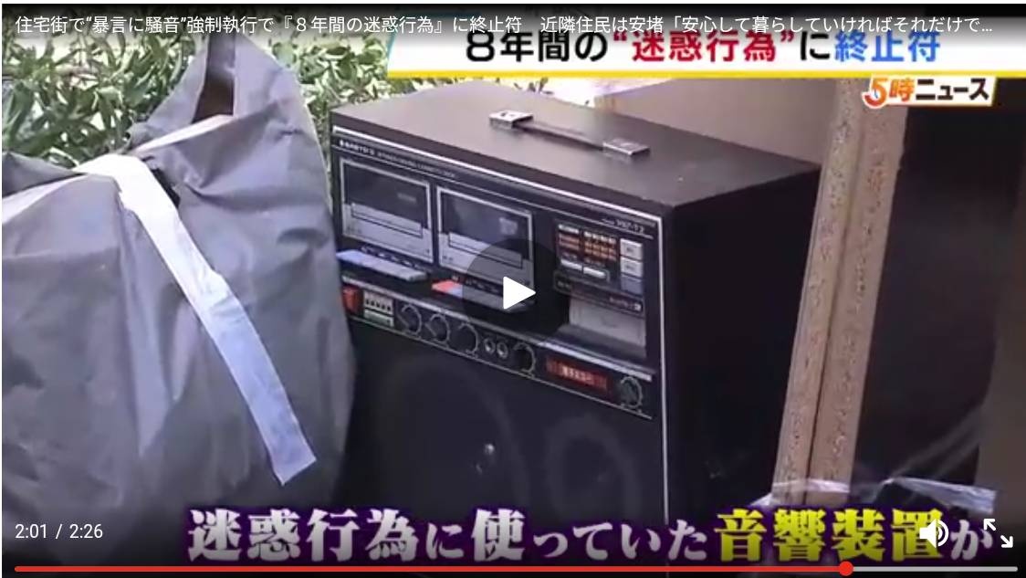 この荷物の持ち主は、約8年前から近所の住民に対して暴言や騒音などの迷惑行為を繰り返してきた男性です。あるときは、住宅街に車のエンジン音が響き渡ります。さらに朝6時から大音量で軍歌を聞かされることも…。