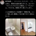 ごめん、東京の友達の家に行くと、たいてい「ユニットバス(うんこ風呂)」と「ワンルーム」でビビる。普通に汚く感じてしまう…