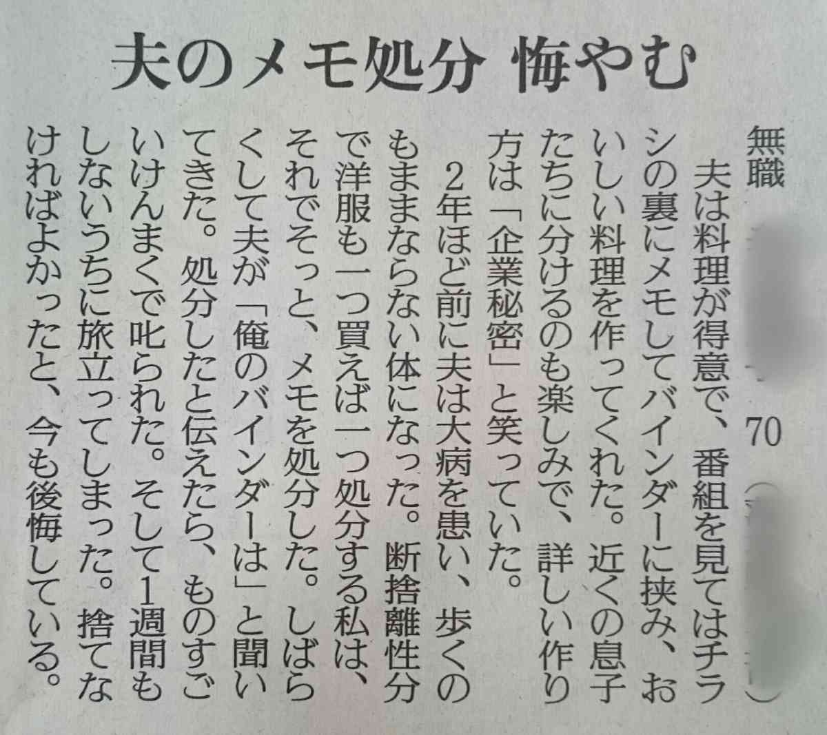 断捨離するやつ叩かせたいだけやろわわざわざ新聞に投稿するような内容ちゃうし