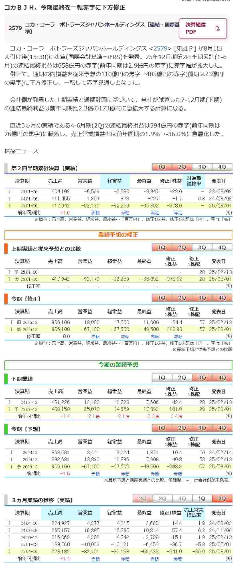 アメリカのコカ・コーラ株は上がり続けるのになんで日本コカ・コーラは弱いの?
