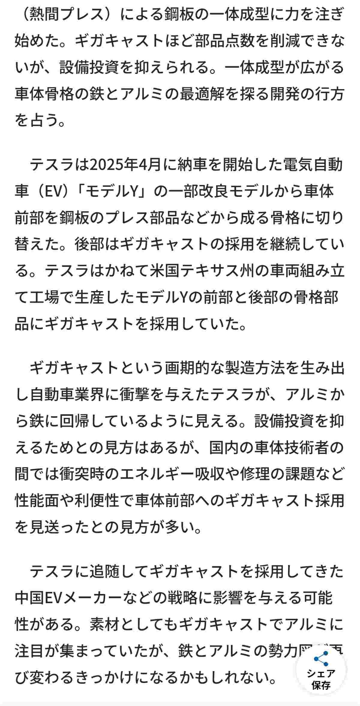テスラ信者はギガキャスト絶賛してたのになぜ・・・