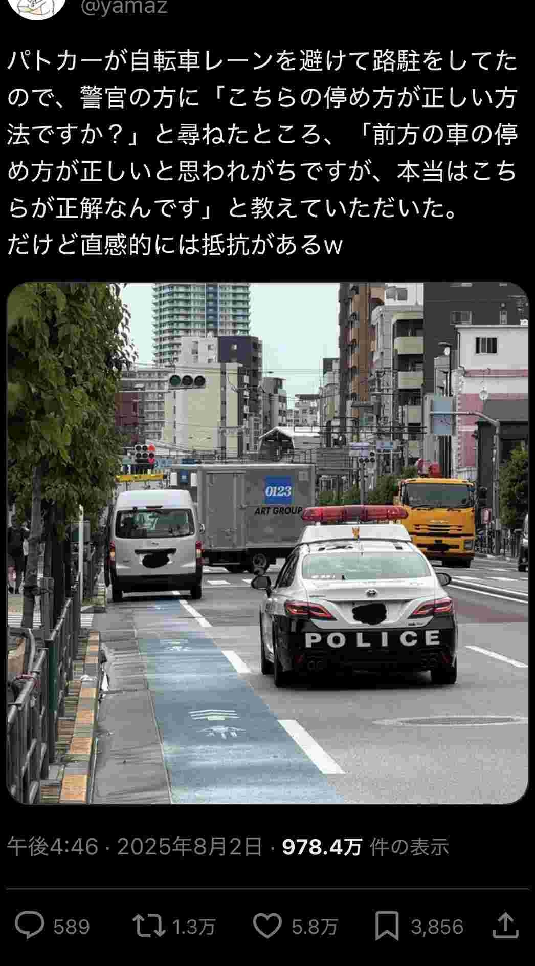 こういう頓珍漢なことをほざく馬鹿が自転車レーンを跨いで停めるんだろうなきっと