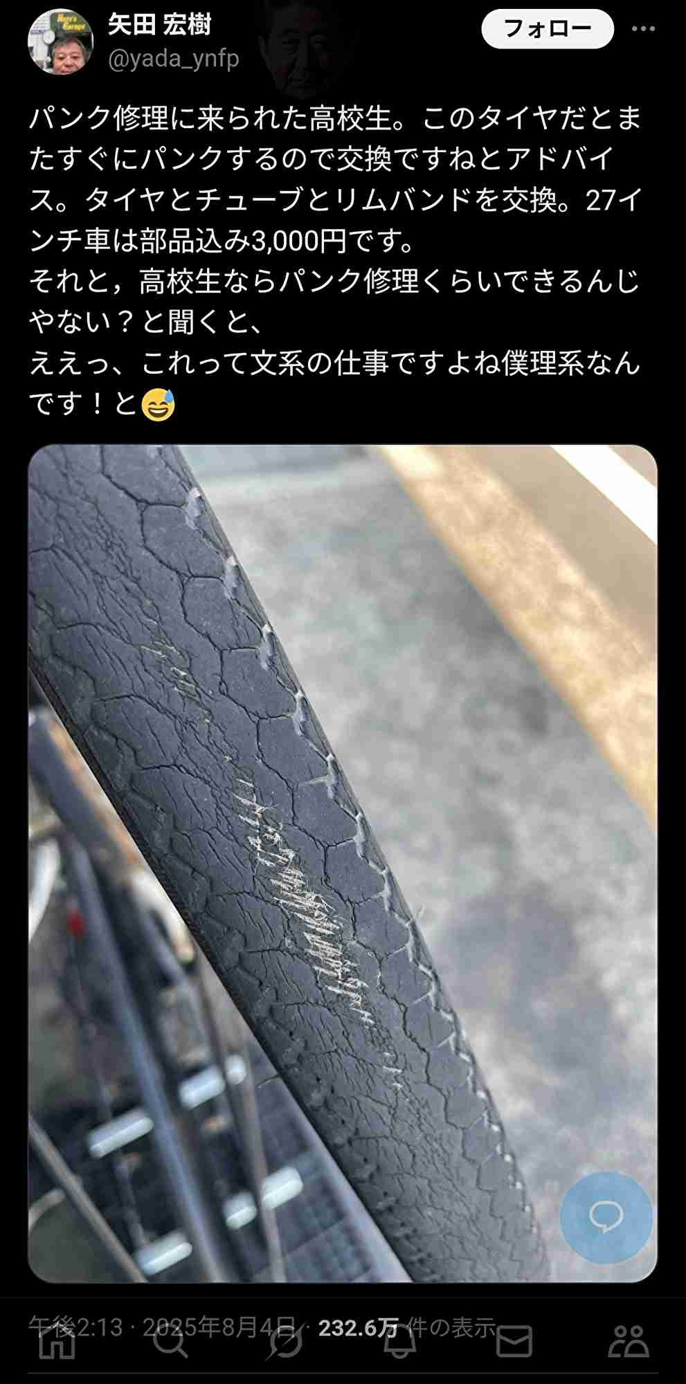 自転車屋「今の子ならYouTubeの修理動画見ながら直せちゃうでしょ」