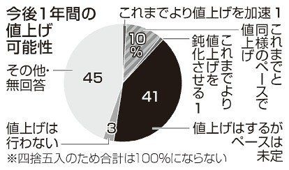 <値上げ>今後1年間で5割超実施へ 主要113社アンケート
