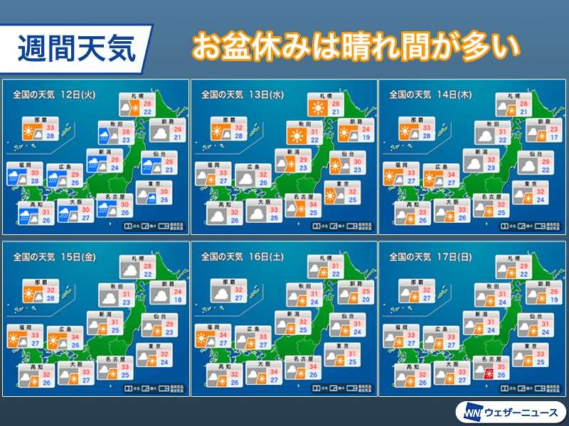 お盆休みは高気圧が勢力拡大 強い日差しと暑さが復活