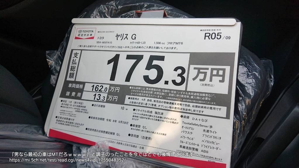今月中には今のヤリスを関東地方のトヨタで下取りしてもらうから中古市場へ出されると思います