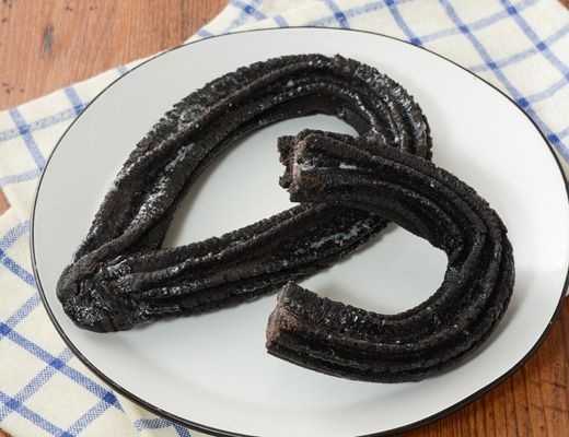 ブラックココアを生地に練り込み、グレーズを掛けて仕上げたチョコチュロッキーです。