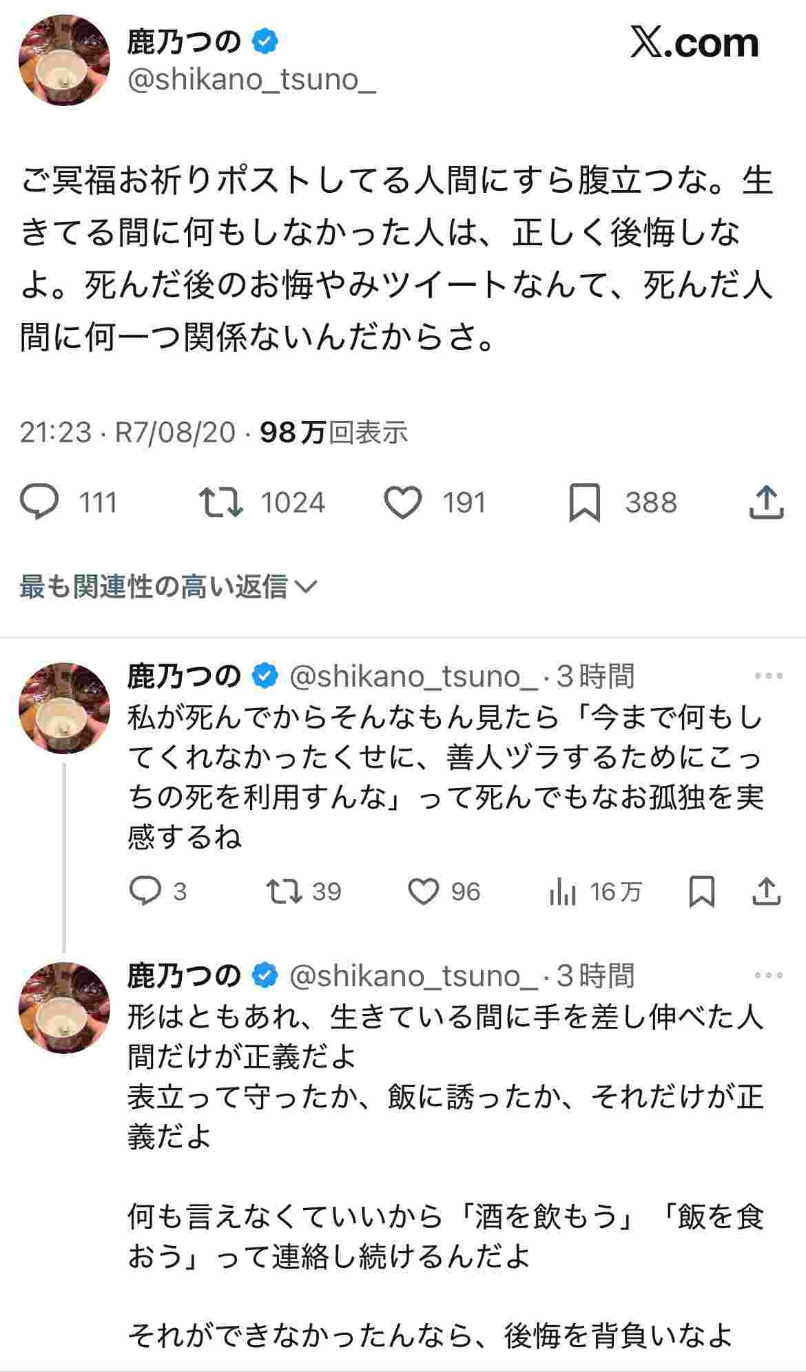 レイヤーが自殺ほのめかしたら嫌味で冥福祈られたんかと思ったら赤の他人に対する冥福にキレてんのかよ