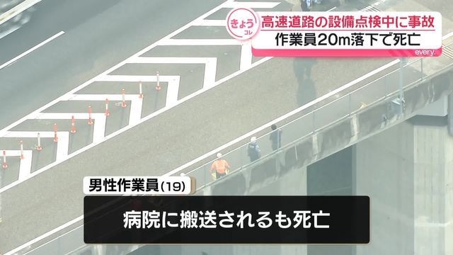 街路灯の点検作業をしていた19歳の男性作業員がおよそ20メートルの高さから地面に落下したということです。男性作業員は病院に搬送されましたが、その後、死亡が確認されました。