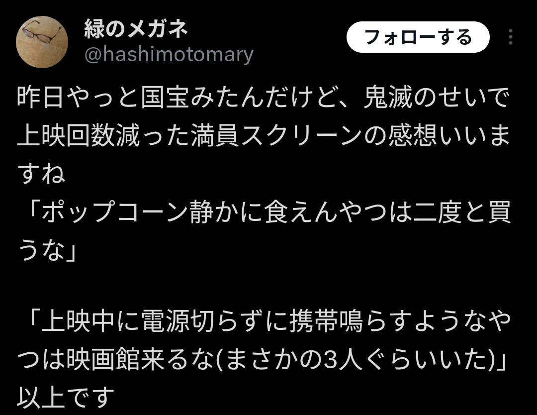 ただ上映中にスマホいじる奴には本当殺意起きるわ