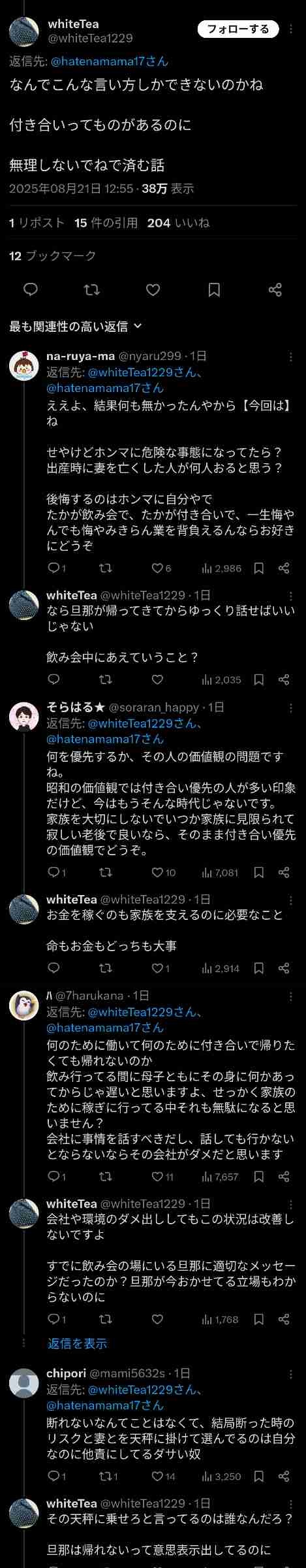 で、そういう気遣いできる男は臨月の妻をおいて感染症リスクも高い飲み会なんてちゃんと断るから