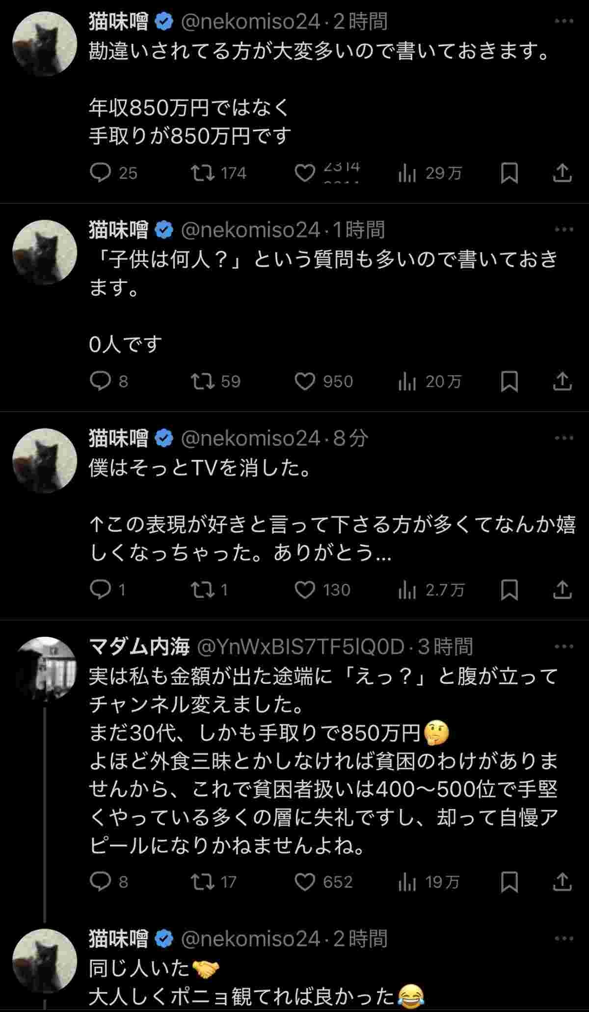手取り850万の共働きみたら生活厳しいっすねって煽るわな