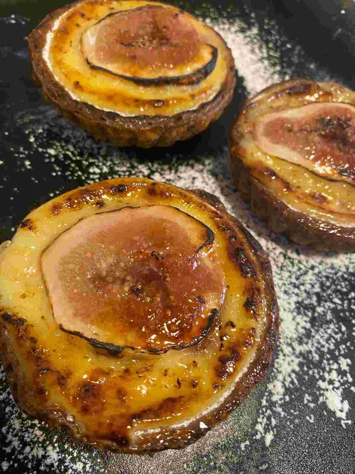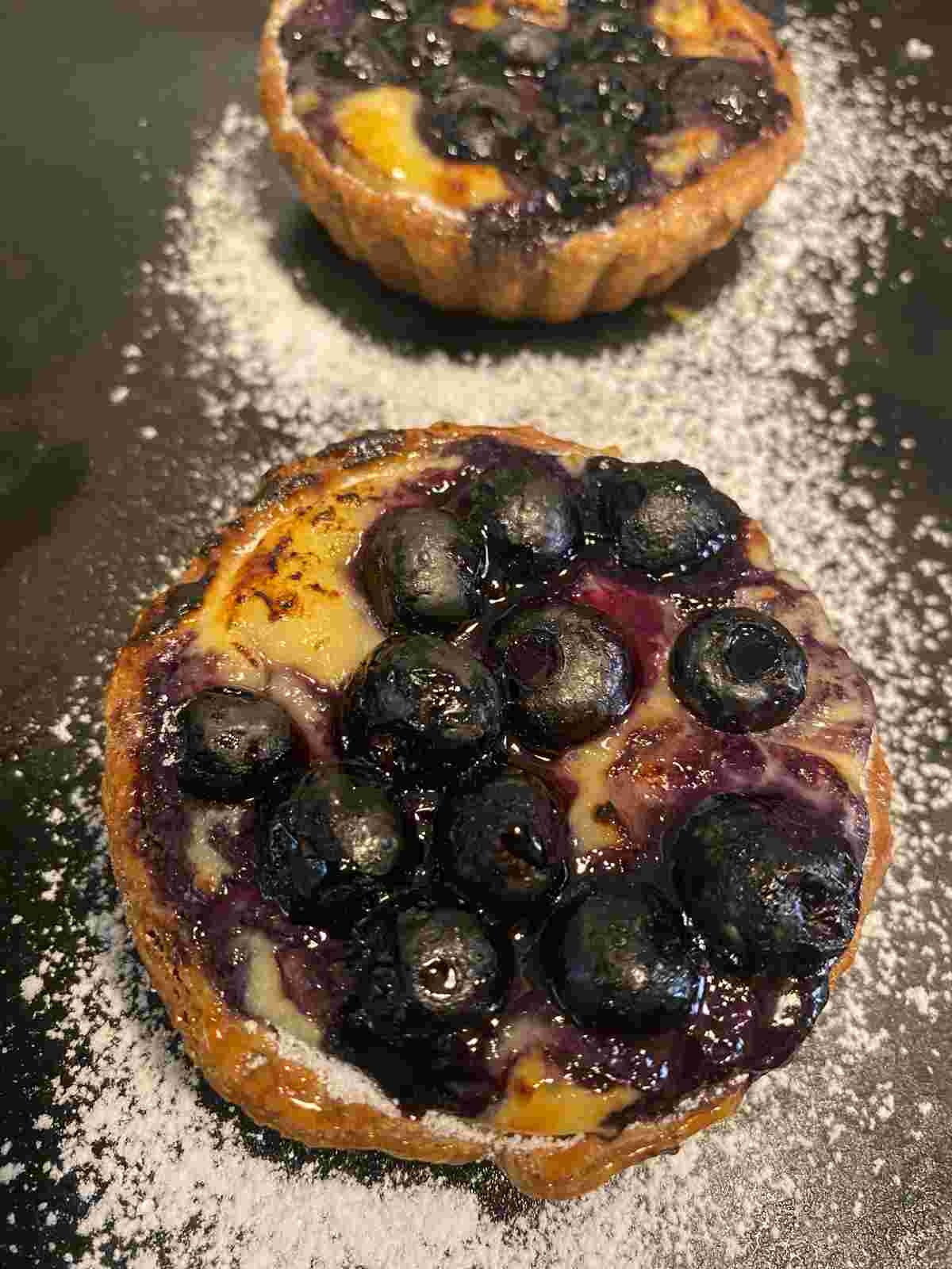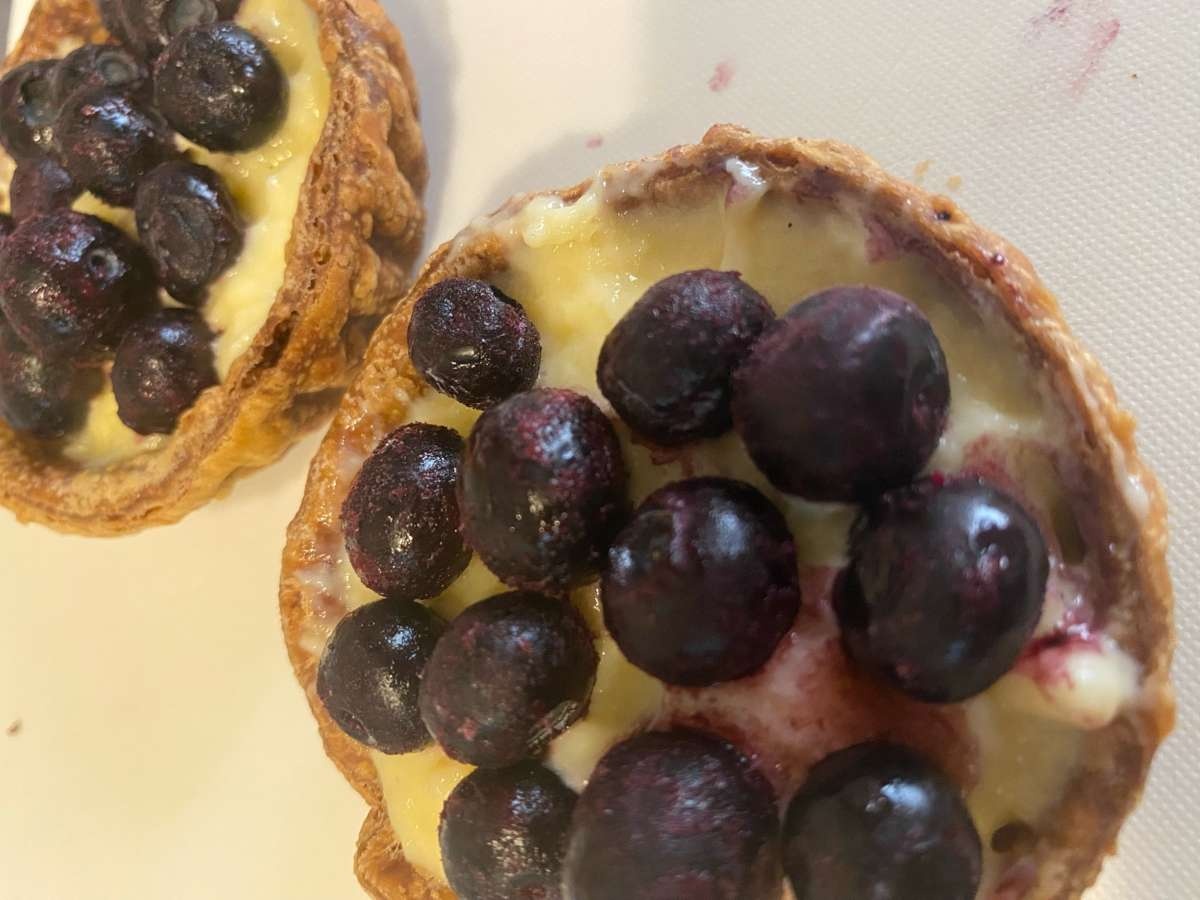 カスタードクリームを入れてお好みの果物を乗せてオーブンで焼き込む!