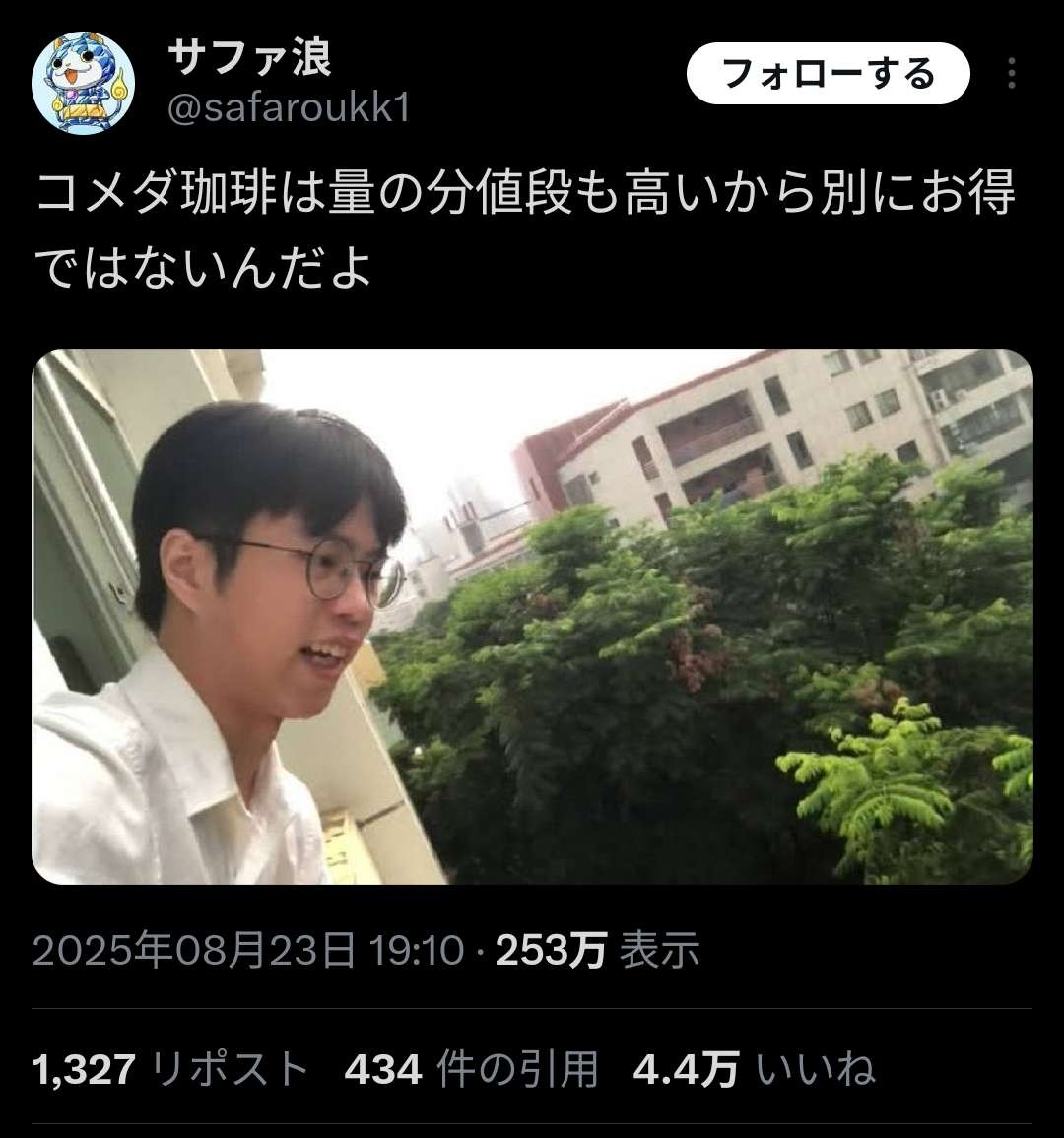 コメダのボリューム感は魅力だけど、確かに値段はちょい高めかもな。でもあの雰囲気込みで考えると、まあアリかなって思う時もあるんだよな。