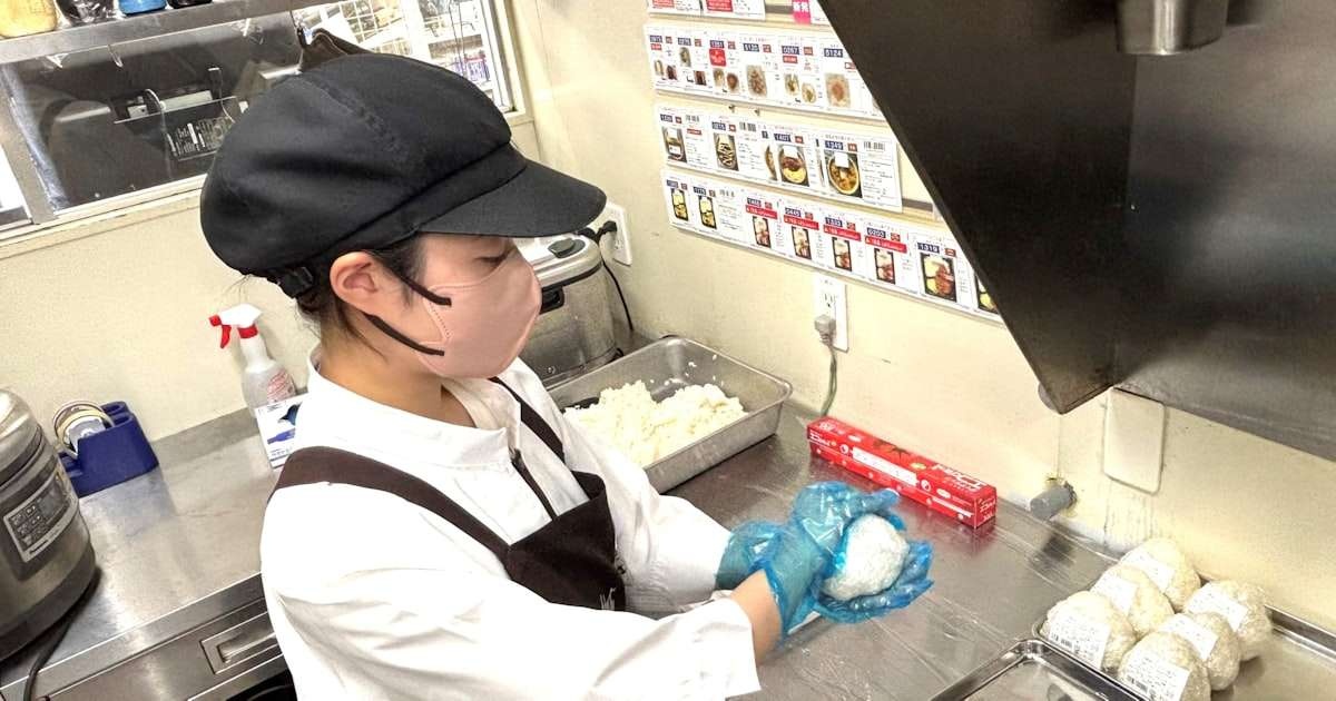 ローソンは26日、災害時に店内の厨房でおにぎりを握る訓練を報道陣に公開した。物流の寸断や工場の被災で店舗に食品を届けられなくなった場合、店に余っているコメを使って提供する。地震や浸水で散らかった状態の家でも箸を使わずに片手で食べられる手軽さを打ち出し、有事の際のコンビニエンスストアの利便性を高める。厨房を備えた全国の約9600店で、2025年度中に体制を整える。同社は店内調理サービス「まちかど厨房」を手がけている。日ごろ各店で使う弁当用のコメを活用し、災害時におにぎりを販売する。価格は1個200円(180グラム)で、通常品の2倍弱の大きさとする。塩やノリ、具材は使わず、食品用ラップフィルムに包んで握る。