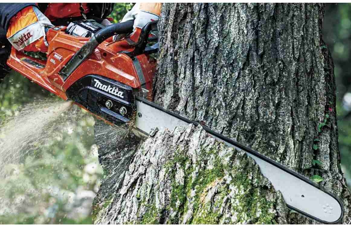 マキタ、充電式チェーンソーの最上位モデルを発売。従来製品では難しかった木の切り倒しが可能に