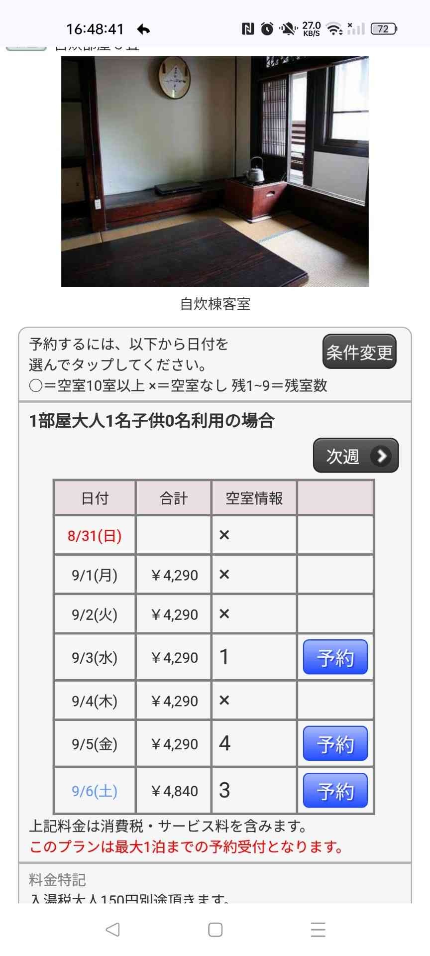 休み家族連れとかカップルだと満室でも一人なら空いてること結構あるからいいと思うよ。