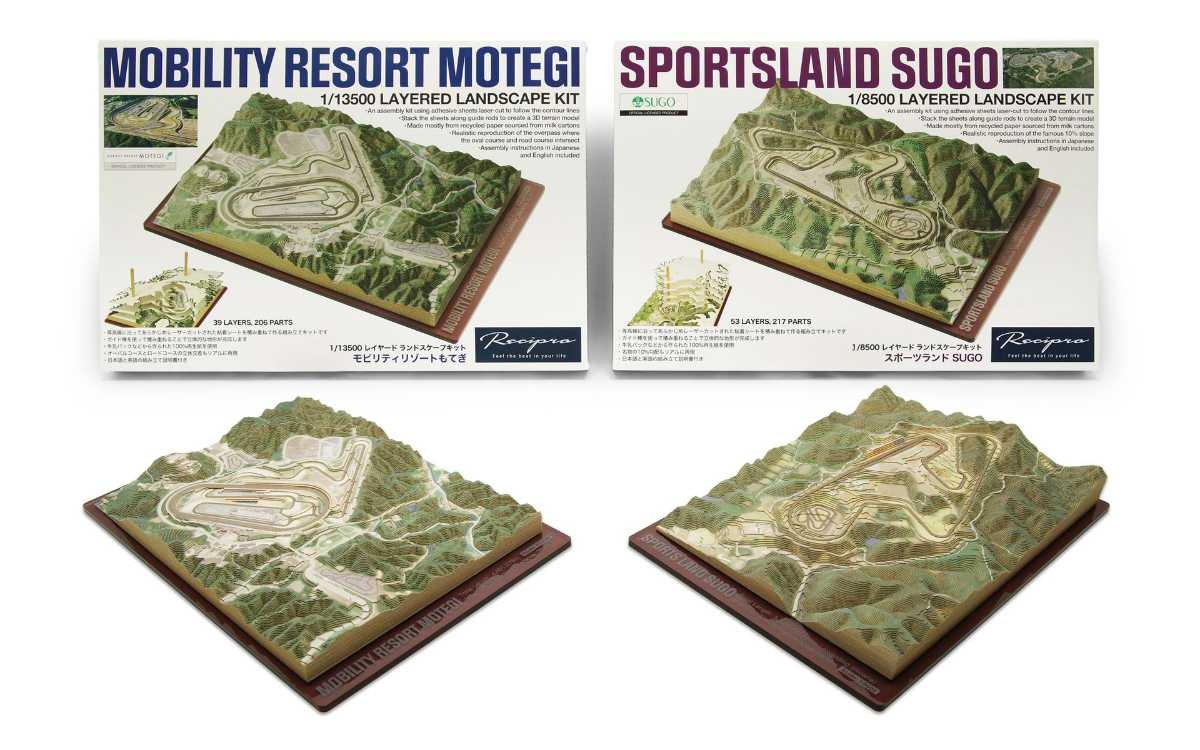 今回は日本を代表するサーキットである「モビリティリゾートもてぎ」と「スポーツランドSUGO」を、リアルな地形を「作って」「触って」「飾って」楽しめるキットとして商品化した。