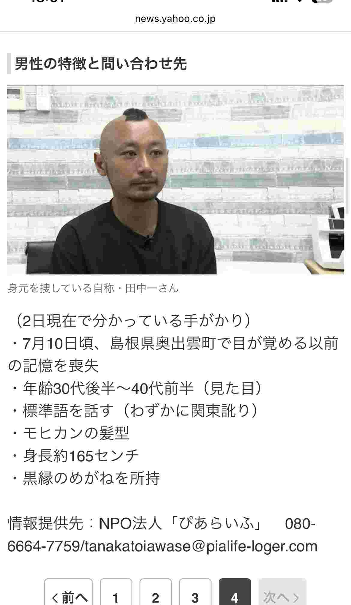 男性は「田中一(たなか・はじめ)」と自称しています。本名はまだ、思い出すことができません。
