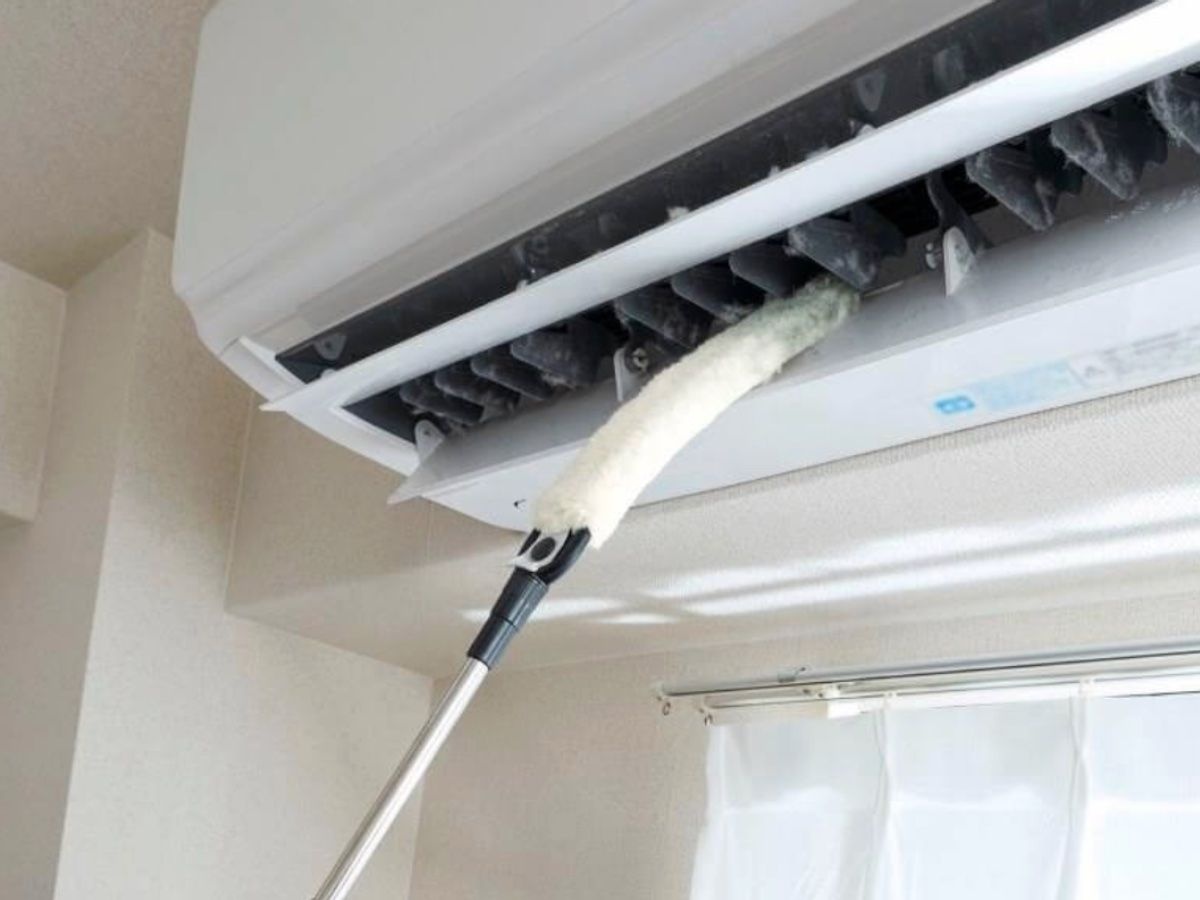 エアコン送風口に入り込む掃除ブラシ、コジット