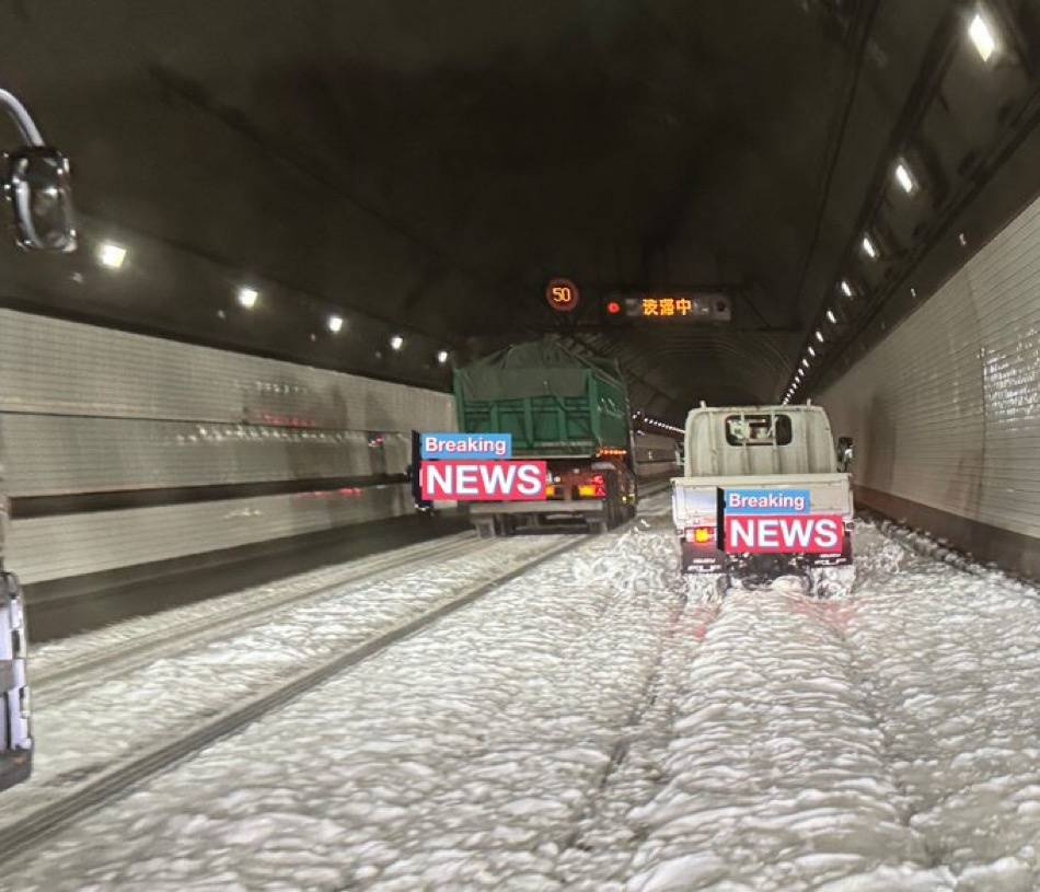 東京湾アクアライン、消火設備が誤作動を起こし泡まみれ