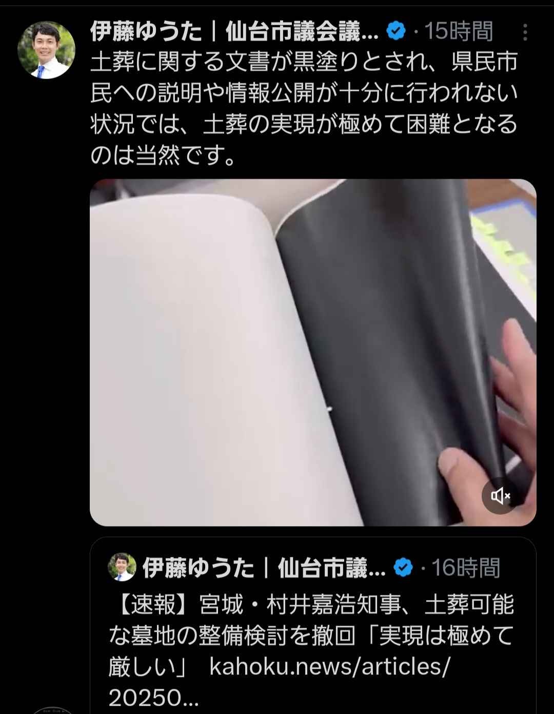 宮城県、イスラム教徒への土葬墓地問題…仙台市議「説明文書が全部黒塗りなんだが…」