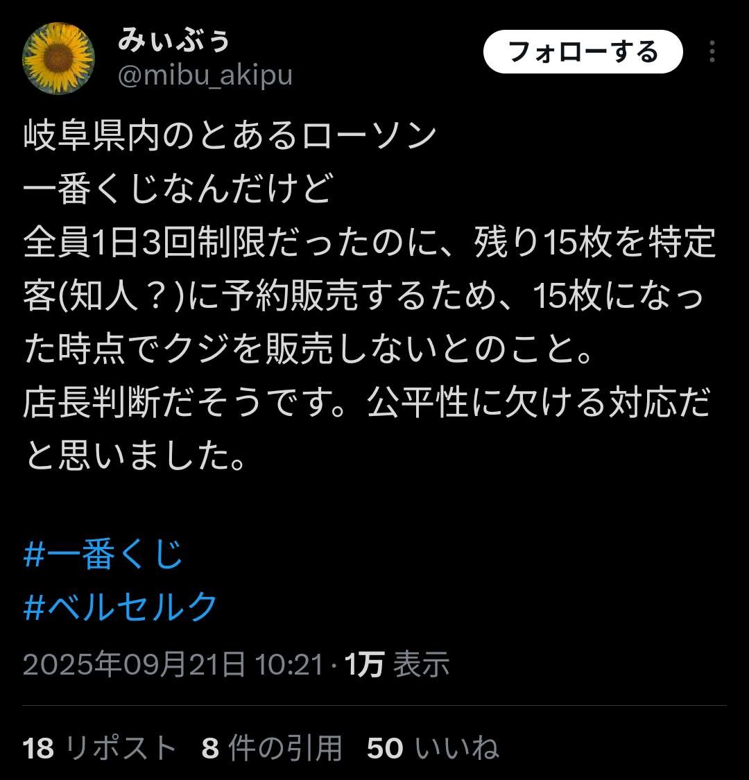 本部にチクったら二度と一番くじ納品されなくなる
