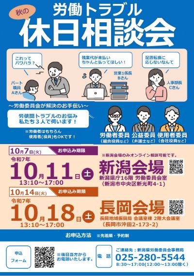 「労働トラブル休日労働相談会」を開催します