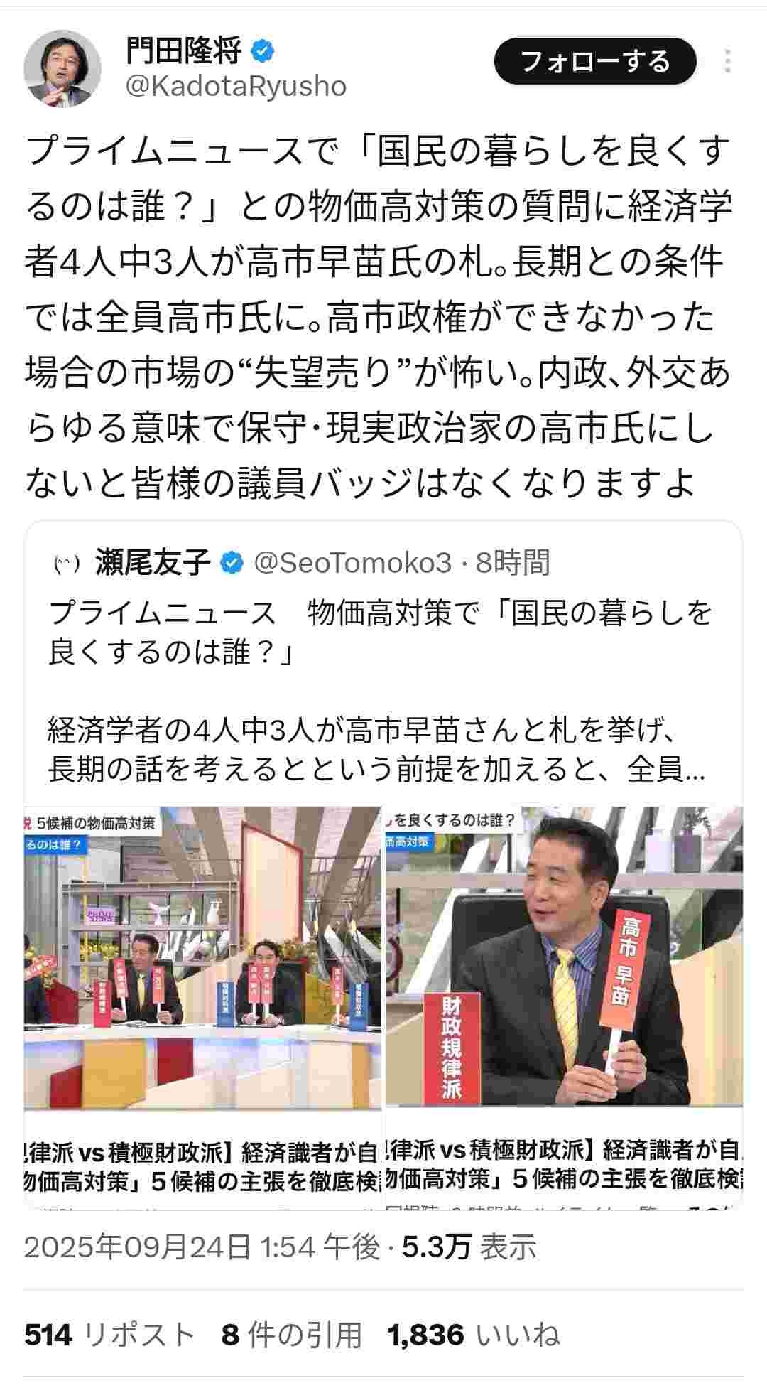 門田もこんだけ応援して高市が実際総理になった後の言動が楽しみだ