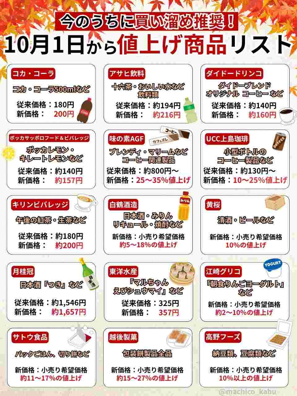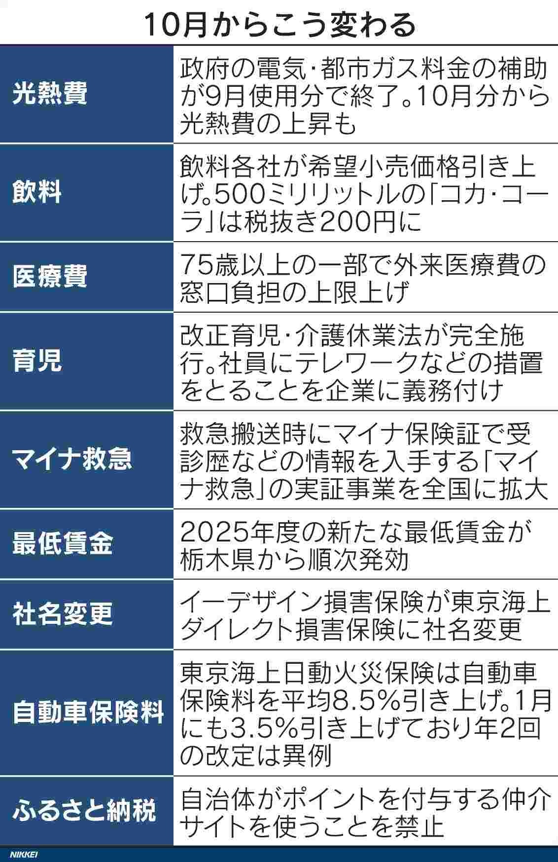10月1日から暮らしに関わる制度や価格などが変わる。