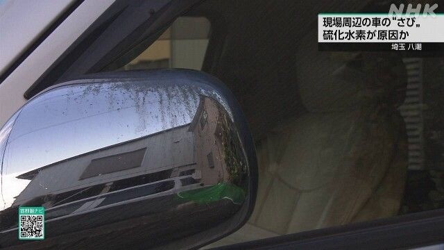 埼玉県によりますと、ことし7月以降、現場周辺では車のエンブレムやミラーなどの部品のメッキがさびて変色しているといった報告が相次いでいます。