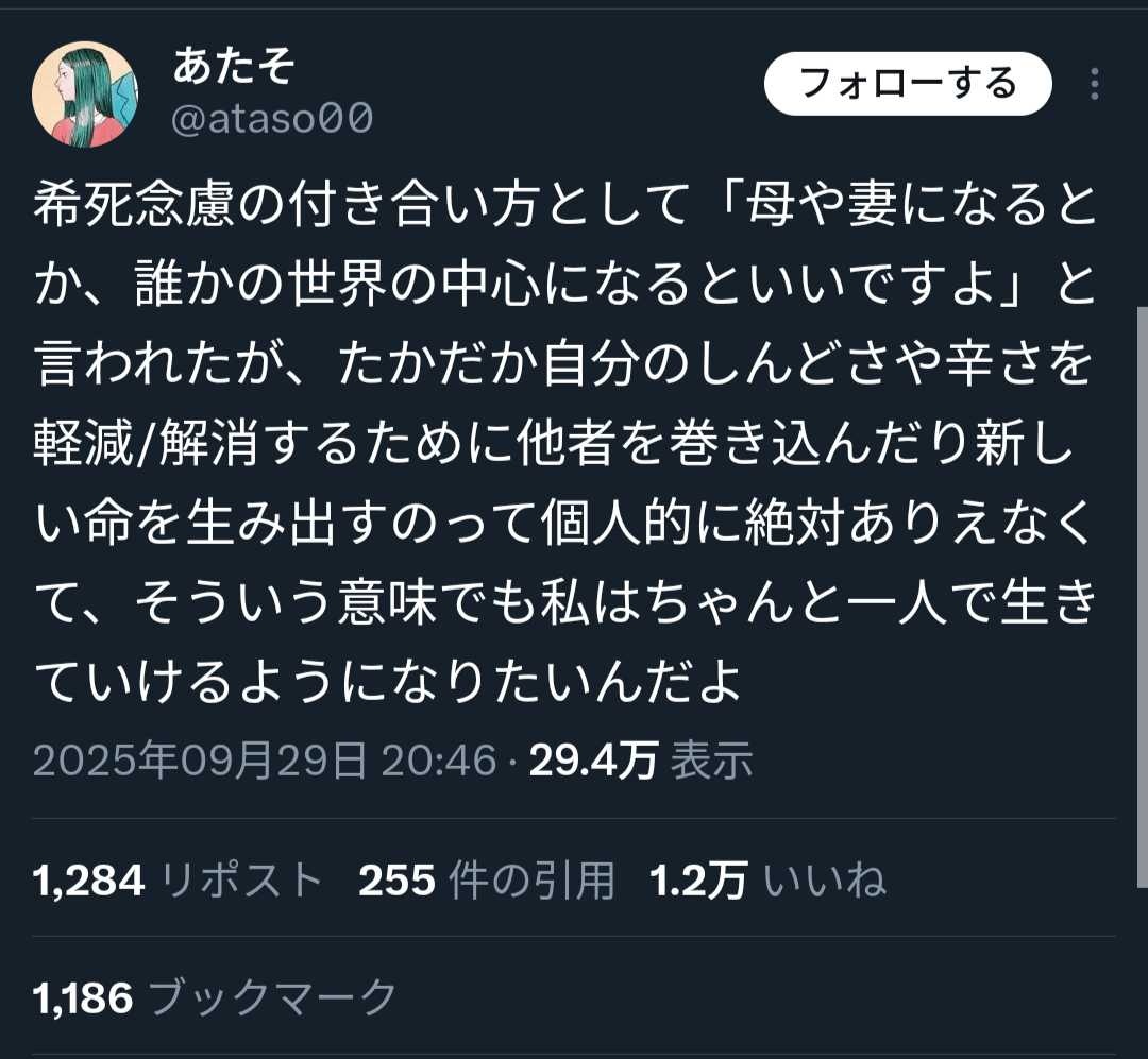 メンヘラで死にたい死にたい言うとるくせに子供作るクソ女より全然まとも