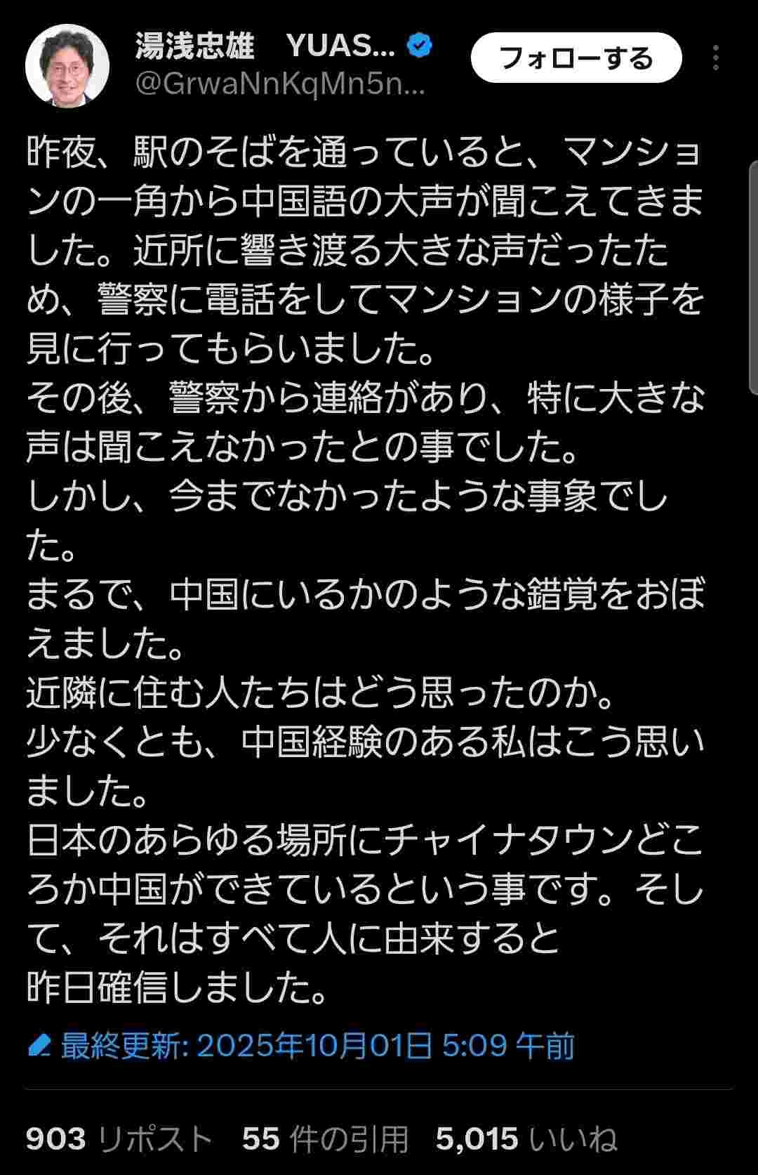 参政党候補、幻聴が聴こえ始める😭「マンションから中国語の大声が聞こえ、警察に通報したが何も無かった」
