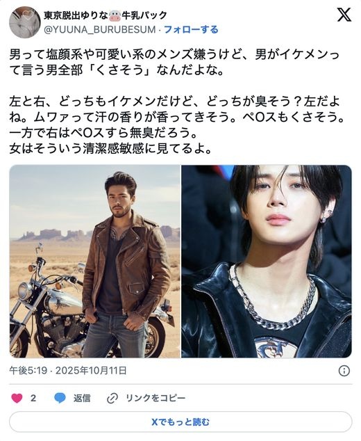 女が好きなイケメンは女顔だからま●こ臭そうです