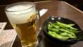 枝豆と酢もつとビール。上司戻ってきたらつつきながら、あと何にしましょーかねーで一緒にメニュー見ながら相談