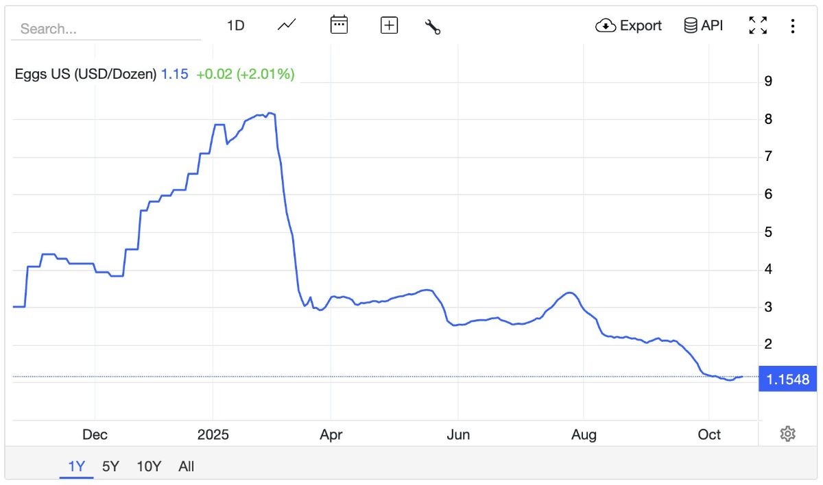 卵の価格が今年3月の水準から86%も急落しました。つまり、わずか数カ月で卵の値段が大幅に下がり、消費者にとっては非常に買いやすくなっています。一方で、生産者にとっては収益が大きく減る可能性があり、業界全体への影響も懸念されます。