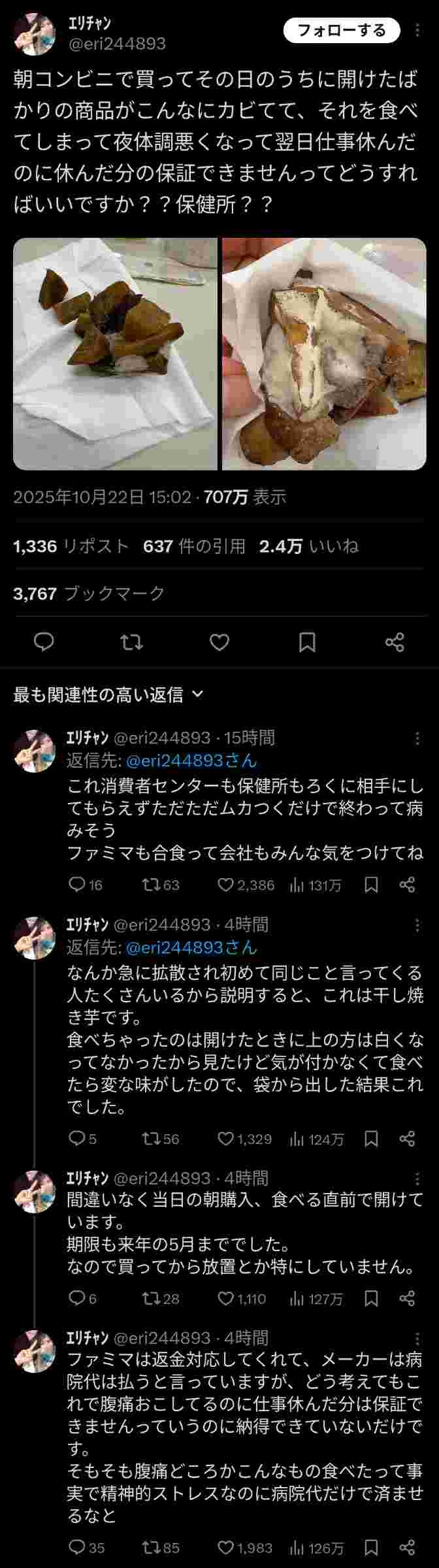 ファミリーマートさん、ドロドロに腐った干し芋を販売し開き直り終わるwww