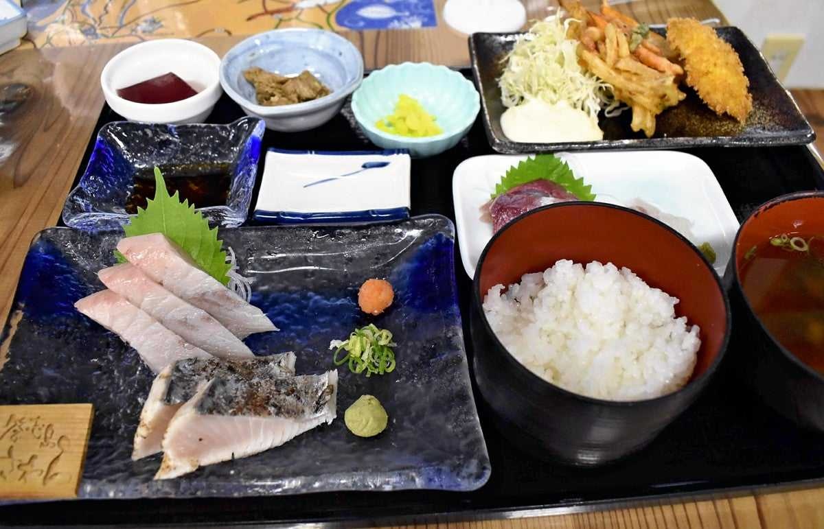 >「答志島のトロさわら 本日入荷あり」。入り口の掲示板に引き寄せられるように、お客さんが次々と訪れる。昼前だが、三重県鳥羽市の「四季の海鮮 魚々味(ととみ)」の店内はいっぱいだ。