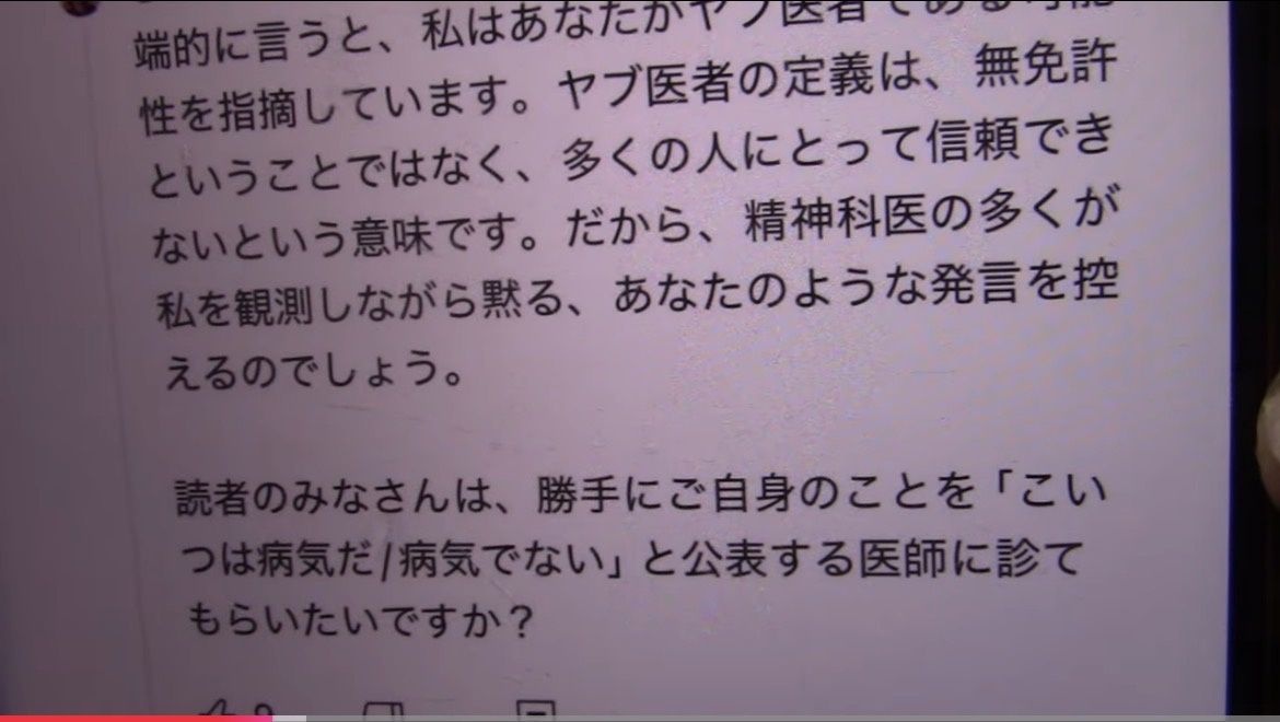 医者を名乗ってらっしゃいますけどあなたのやり方はおかしいですで留めておくべきだった