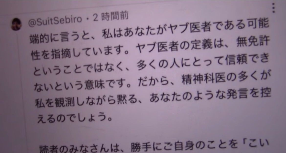 スーツっていう人の言っていることもわかるんだけど結局結論がヤブという医者としてのステータスを貶める攻撃になっている時点で鵜呑みにはできない