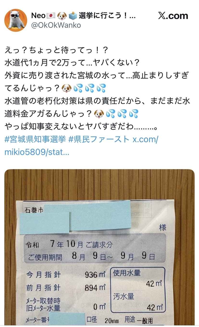 普通の日本人「水道代が1ヶ月で2万円かかった。外資に売り渡された宮城の水終わってる」