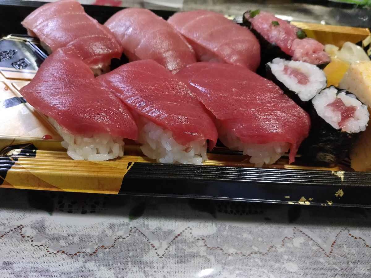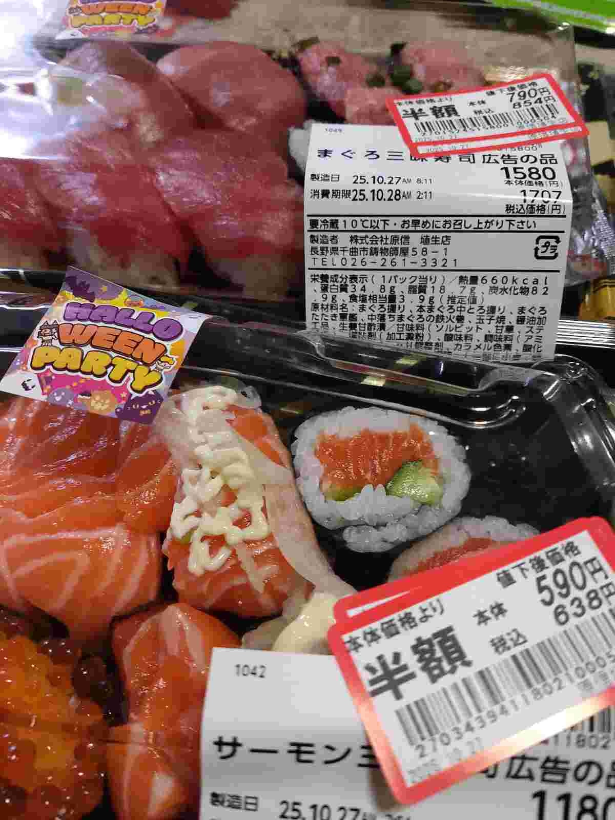 今日の買い物の成果、半額パック寿司を見よ!!🍣🍣🍣
