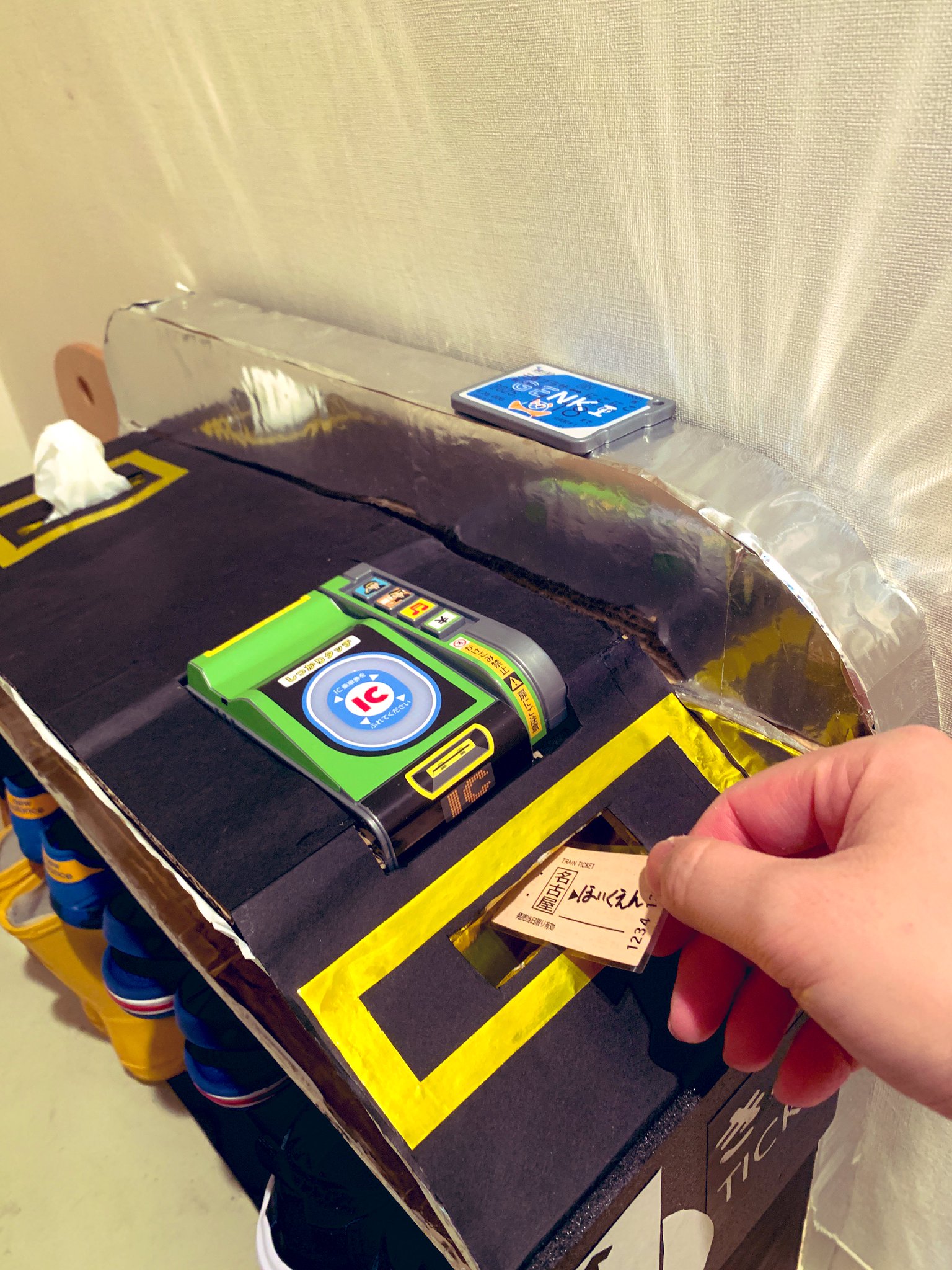 ダンボールの改札を新設してから、小鉄の息子が速攻準備して保育園行けるようになって嬉しい