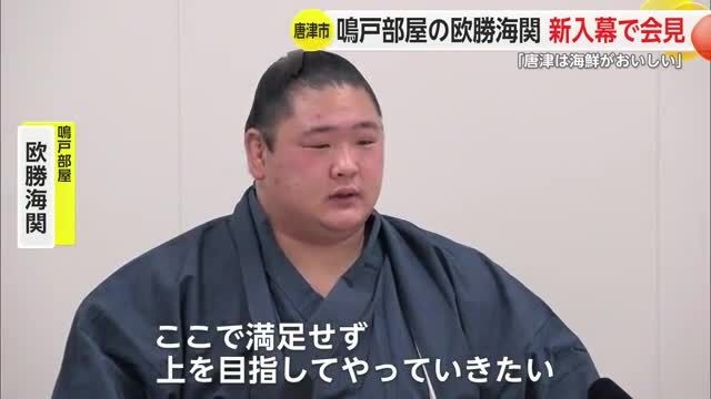 日本相撲協会は27日大相撲九州場所の新番付を発表しました。このうち九州場所期間中唐津市に宿舎を置く鳴戸部屋の欧勝海関が新入幕を果たし決意を新たにしていました。