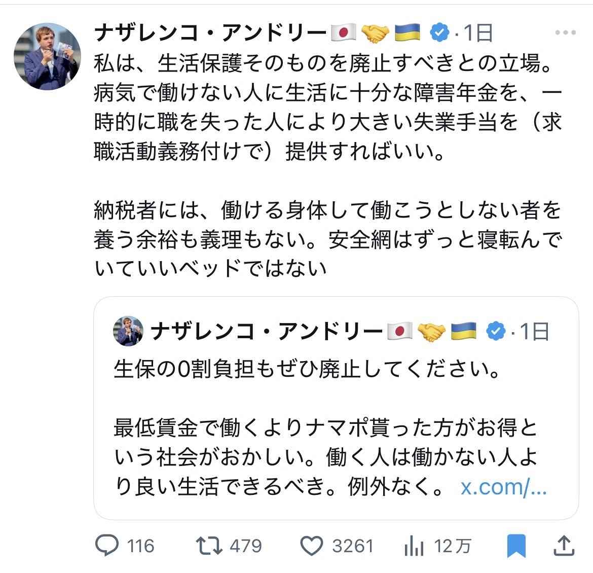 たしかに失業手当を手厚くしてくれたらナマポ廃止でいいな