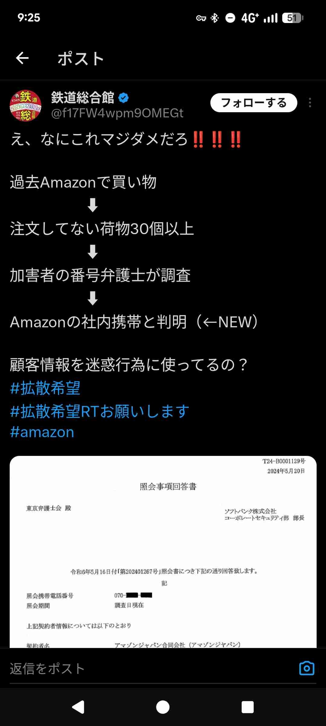アマゾン会社の電話番号入手してそれで登録して発送したパターンもあるってことか
