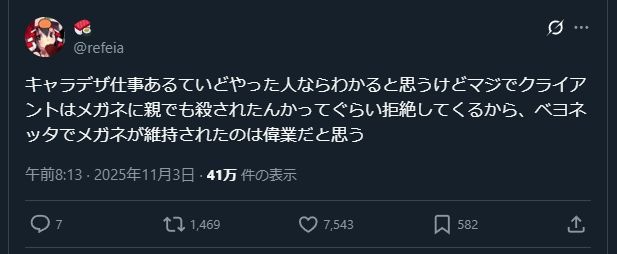 メガネキャラは売上が落ちるみたいなデータがあるっぽい