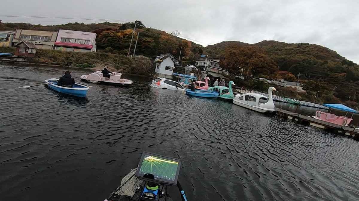 榛名湖に着いて、ボートの準備をしていた時に雷が鳴ったかと勘違いするほどの「ゴゴゴゴー」と音がしたので、振り向いてみたら、車が水の中に入って行きました💦💦